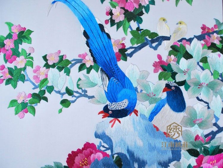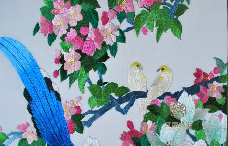 色彩:80余种真丝丝线;色彩为刺绣的灵魂,同样工夫的刺绣,因之前色彩搭配不同,效果大相径庭,此款苏绣精品装饰画由我公司绣娘纯手工绣制而成,她创造性融西方油画在色彩和造型方面的应用,以针代笔,以线代色,由浅入深,变化明暗强烈,皆应从意而发,自情而生,因境而行,均应服从画面整体之感,绝不可妄生一针、妄添一线,真正达到了抒情与造境双进,展示了东方民族所独有的审美观念和追求。