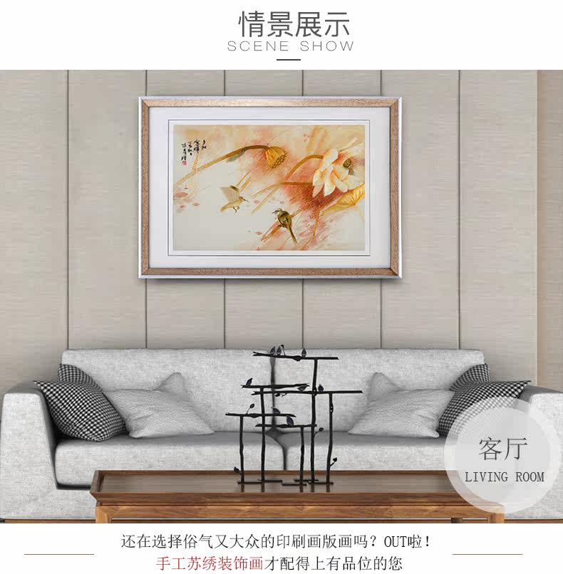 • 餐厅挂画现代中式装饰画水墨禅意中国风新中式刺绣挂墙画苏绣成品