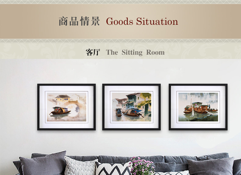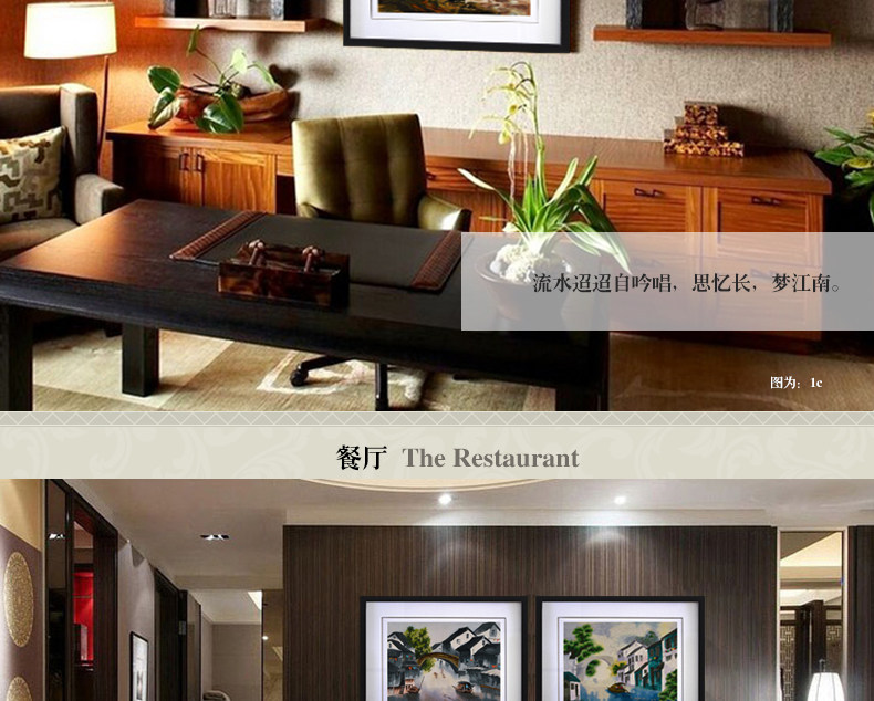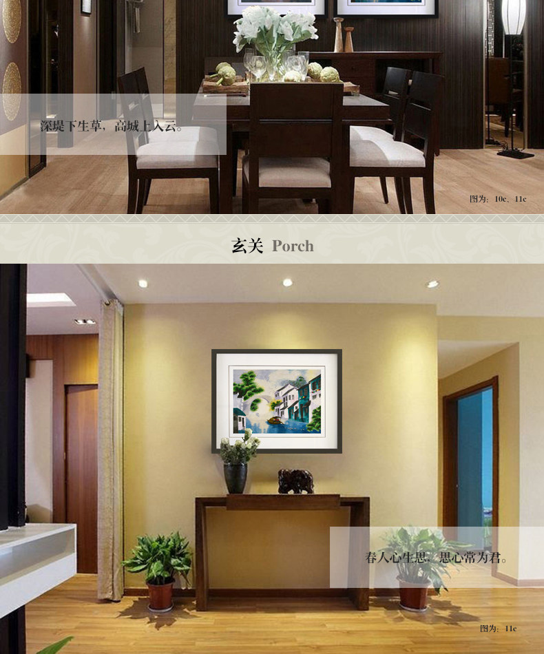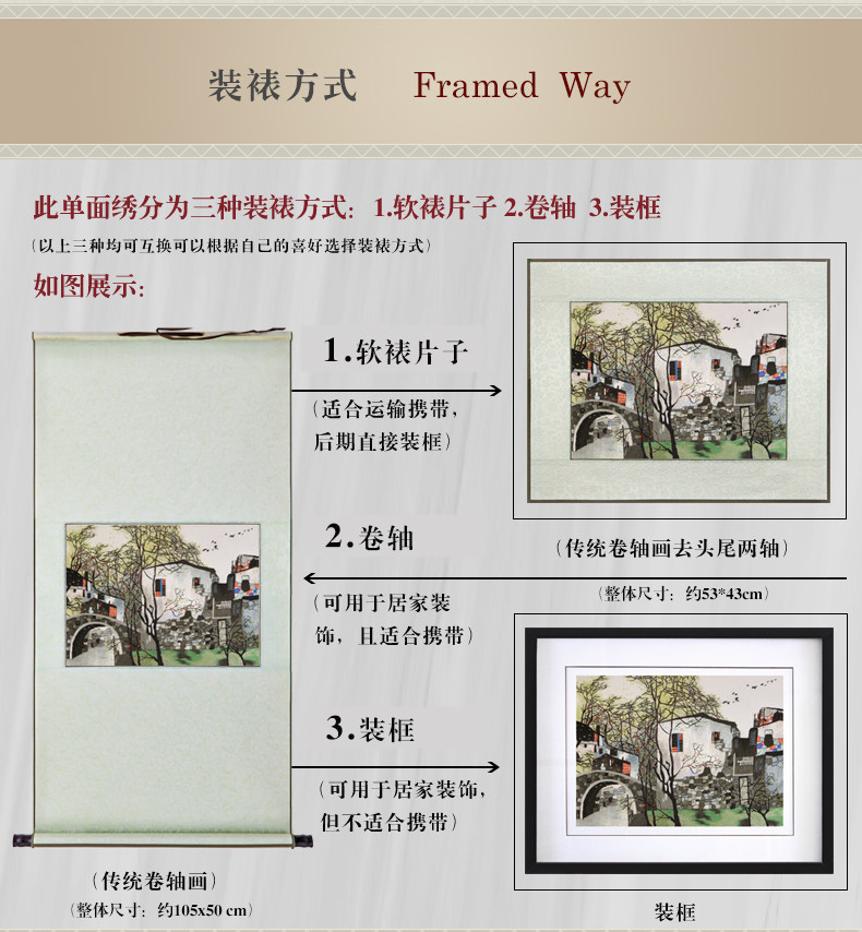 • 苏绣刺绣手工真丝风景装饰画山水卷轴挂画中国风客厅壁画三联墙画