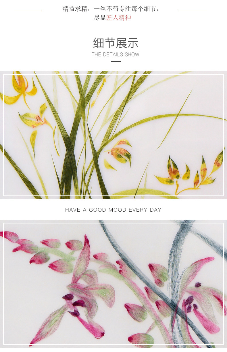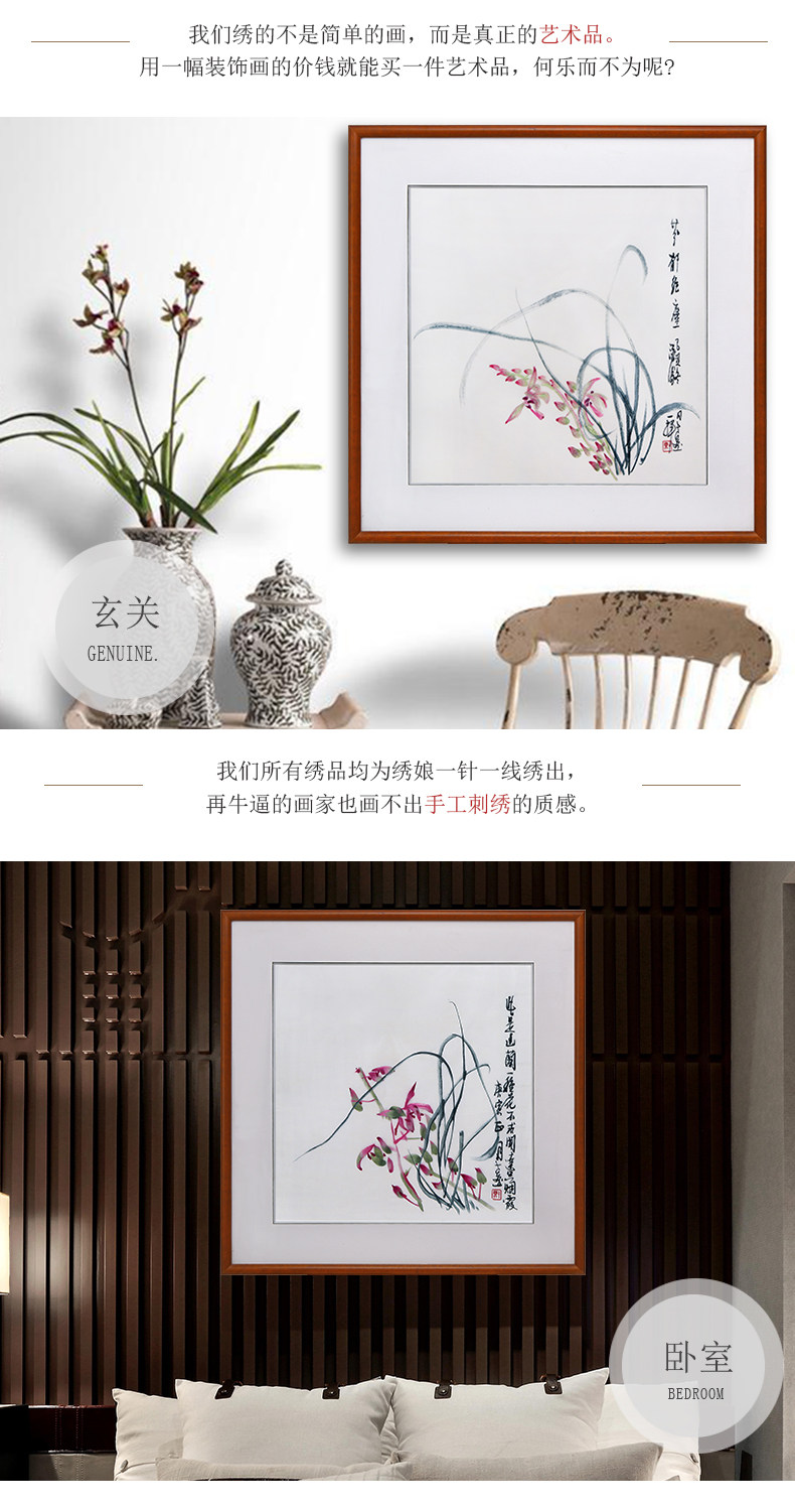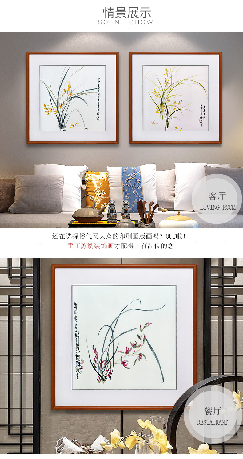 • 苏绣成品挂画玄关装饰画餐厅墙面装饰壁画现代简约小清新墙画兰花