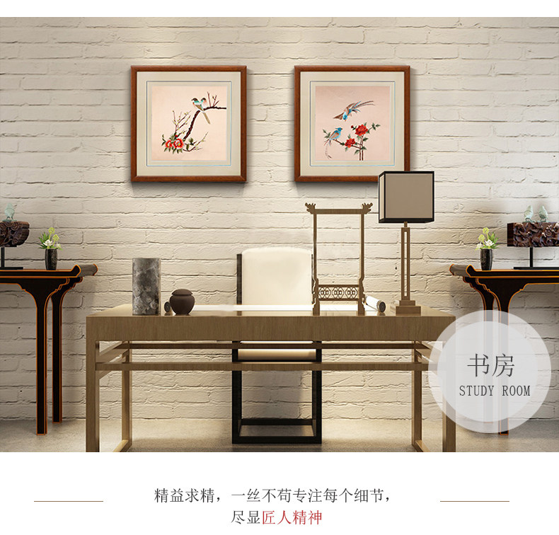 • 墙面装饰画客厅餐厅挂画饭厅新中式壁画背景墙工笔画花鸟三联画