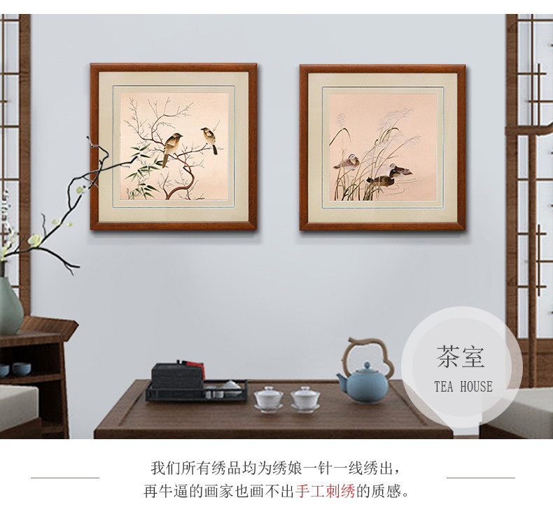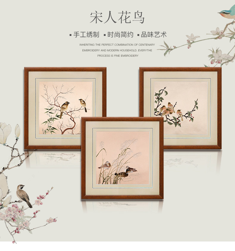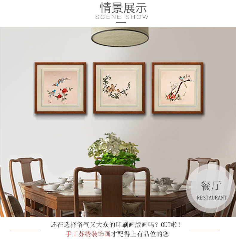 墙面装饰画客厅餐厅挂画饭厅新中式壁画背景墙工笔画花鸟三联画