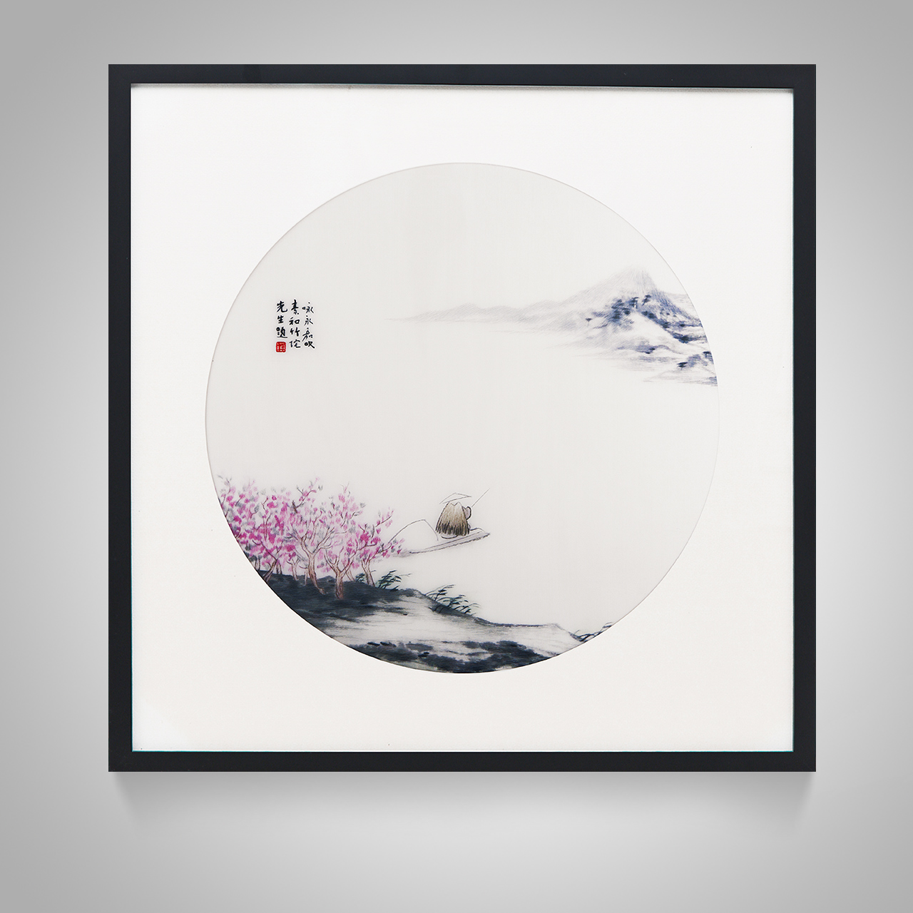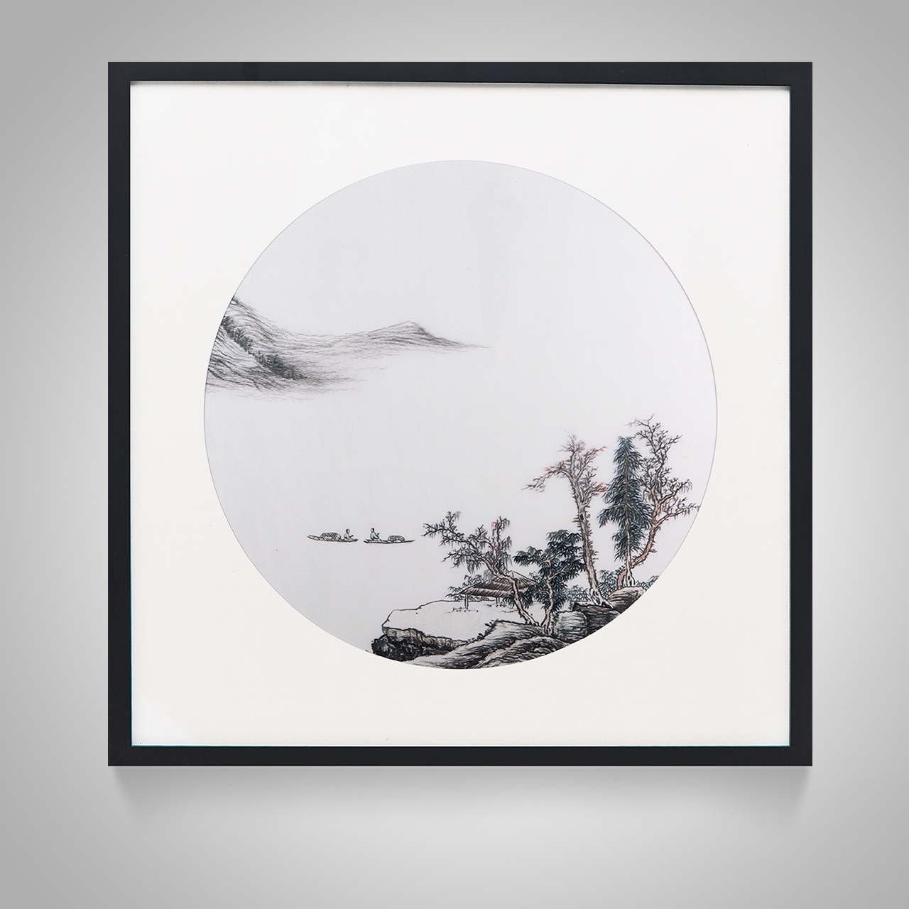 • 中式装饰画水墨禅意中国风苏绣刺绣成品客厅挂画山水画苏州刺绣画