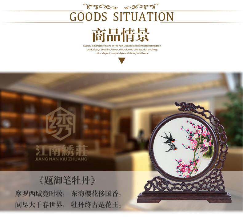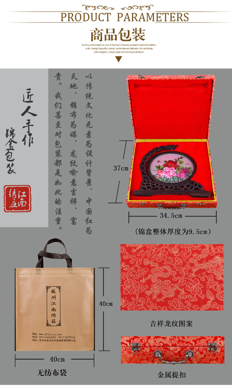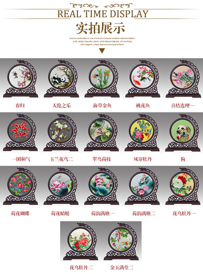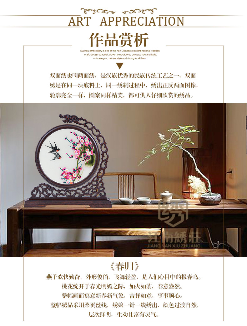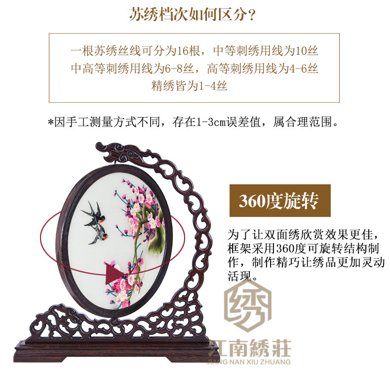 中国特色礼品送老外纯手工苏绣双面绣屏风博古架熊猫摆件鸡翅木