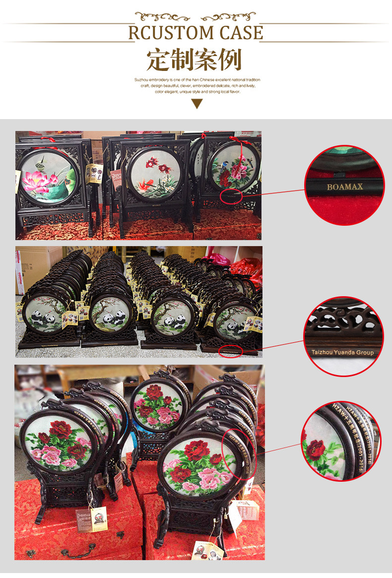 • 中国特色礼品送老外纯手工苏绣双面绣屏风博古架熊猫摆件鸡翅木