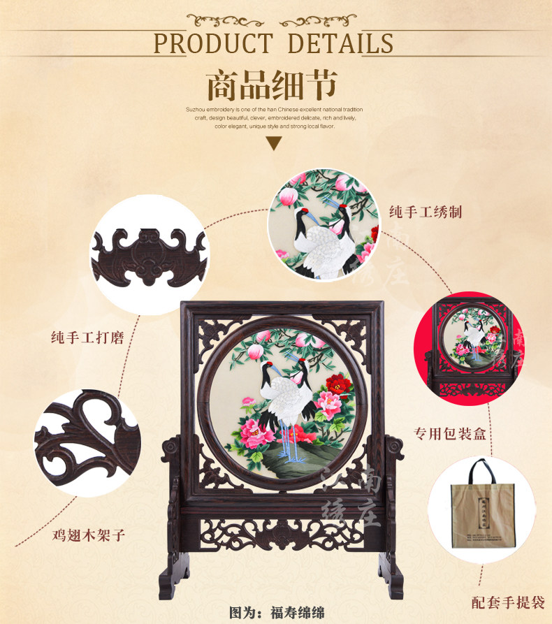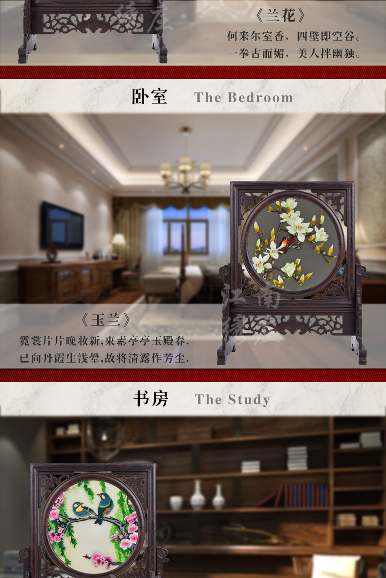 红木摆件工艺品家中装视柜装饰小摆设家居装饰苏州刺绣双面绣苏绣