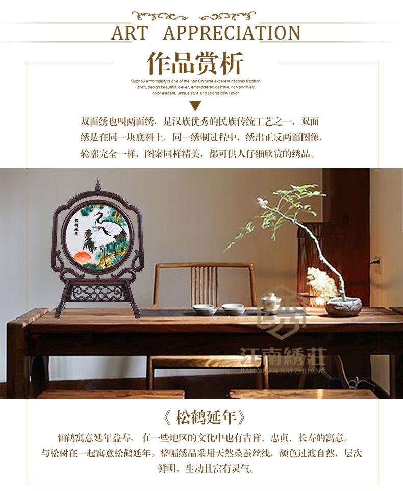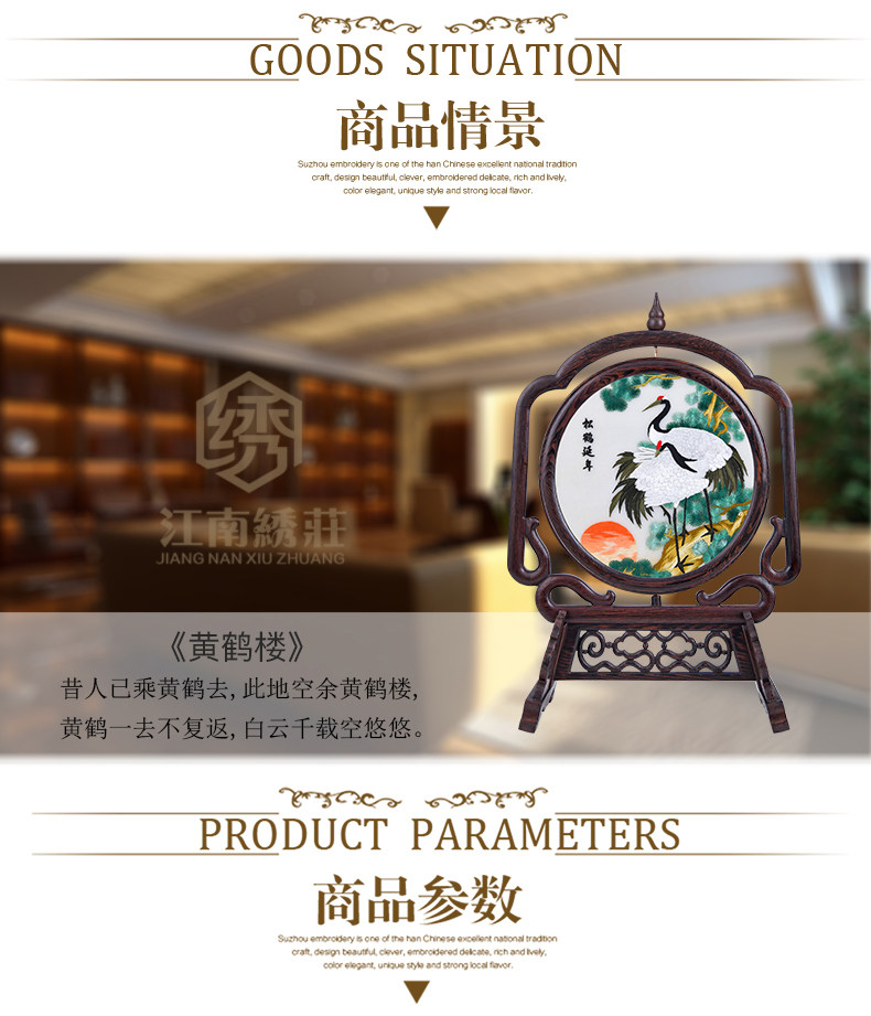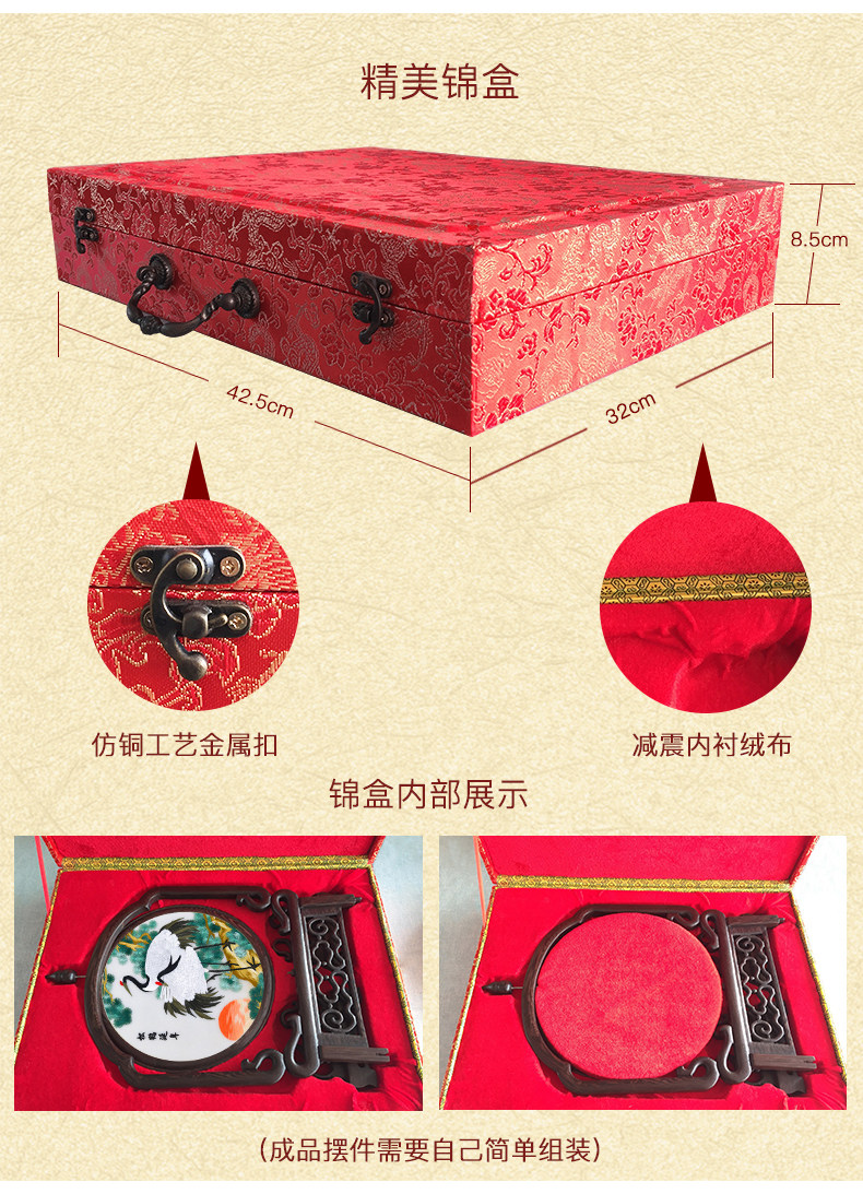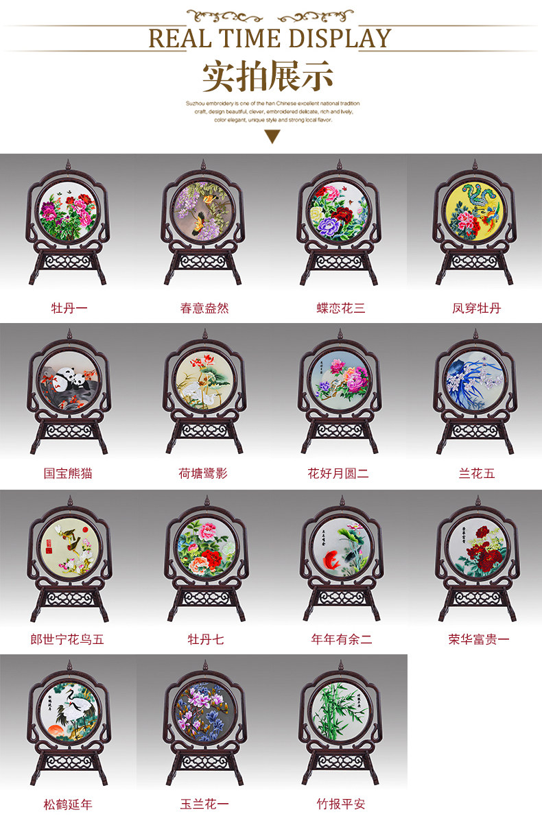 房间装饰品双面绣台屏国礼同款摆件 手工绣礼品送外国人 鸡翅木