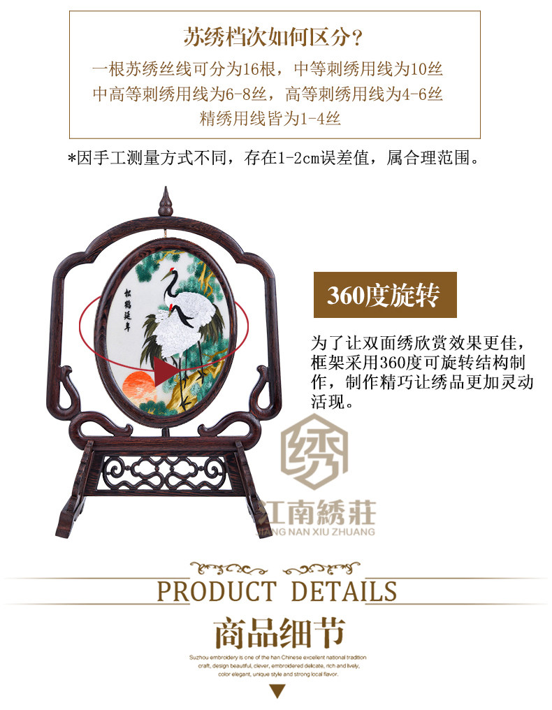 • 房间装饰品双面绣台屏国礼同款摆件 手工绣礼品送外国人 鸡翅木