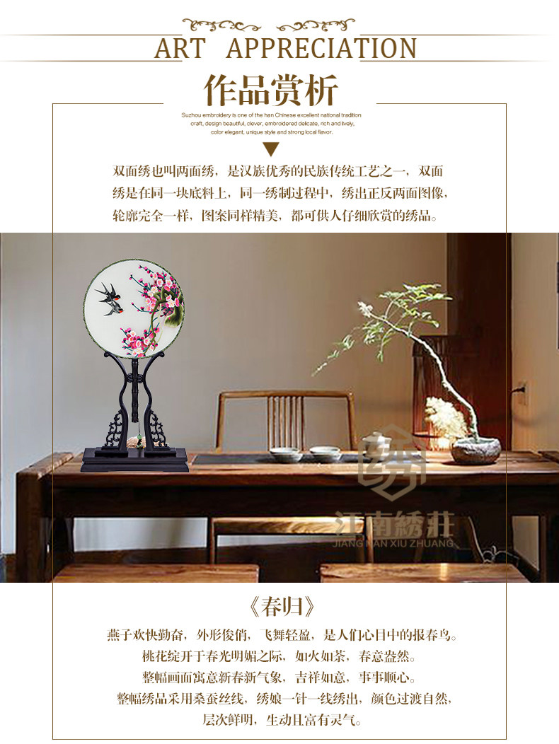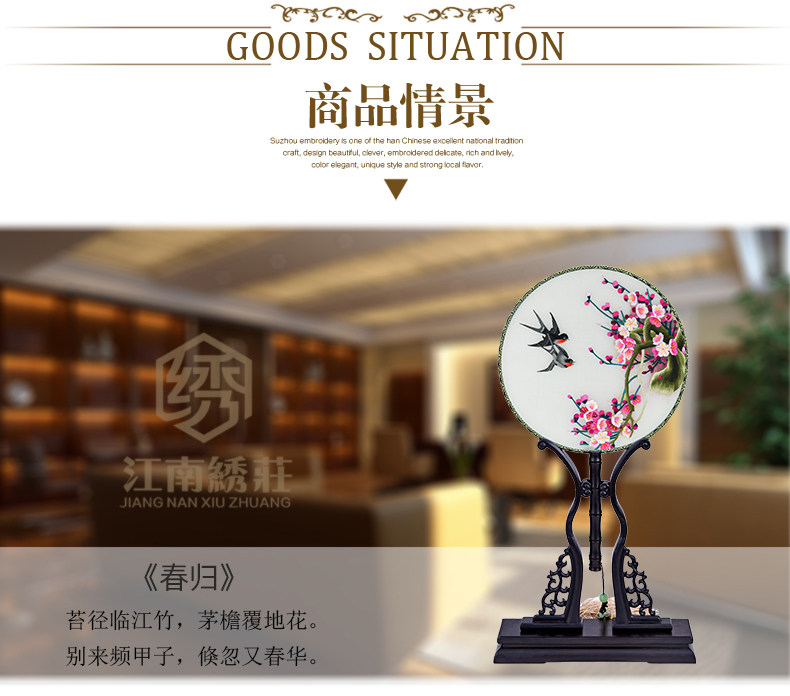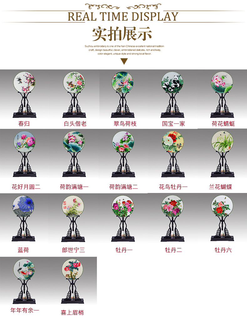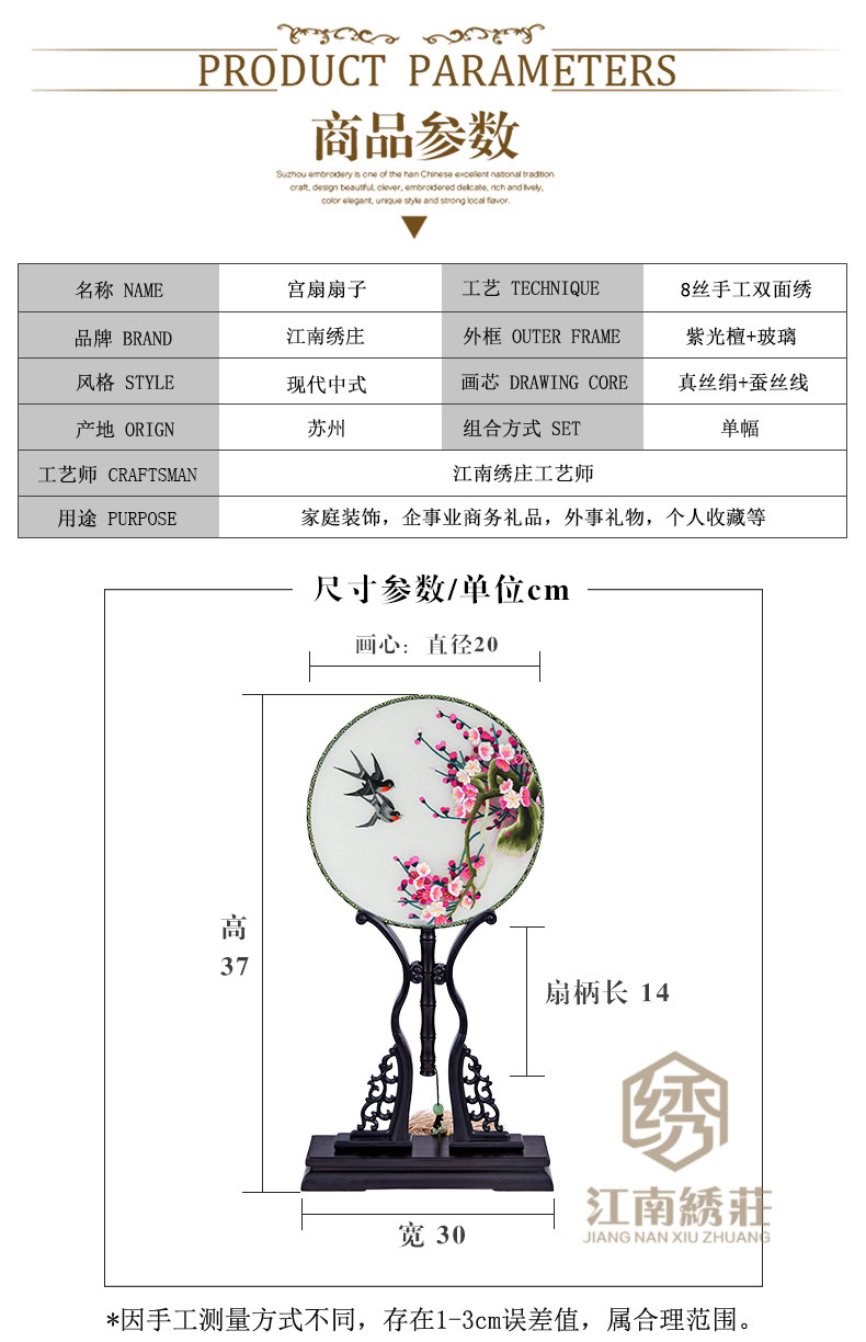• 刺绣团扇手工双面苏绣圆扇子绢扇团扇中式出国礼物送品带座架