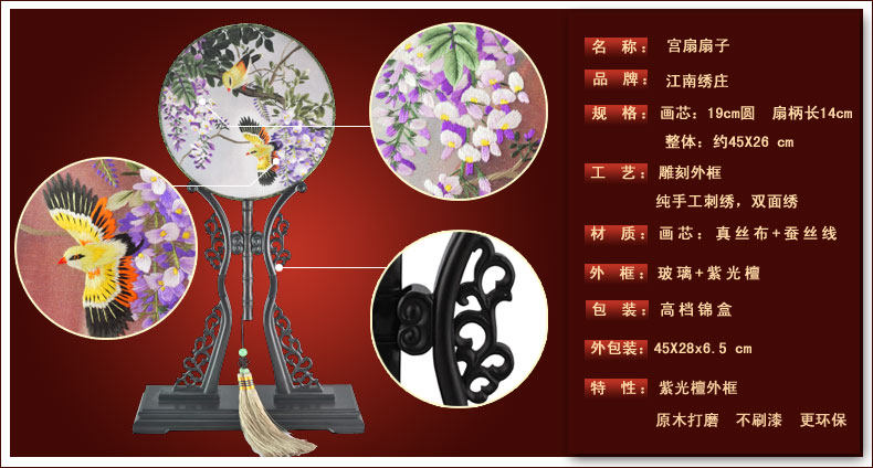 [五福架] 工艺品摆件家居装饰品中国特色礼品客厅苏秀手工刺绣双面绣紫光檀
