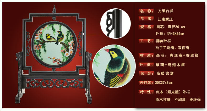 到如今,信息的传播发达,人员流动加大,苏绣插屏这类工艺品摆件为众多家庭做为电视柜摆件,客厅摆件也是非常常见的,能体现主人的生活品味和文化底蕴.