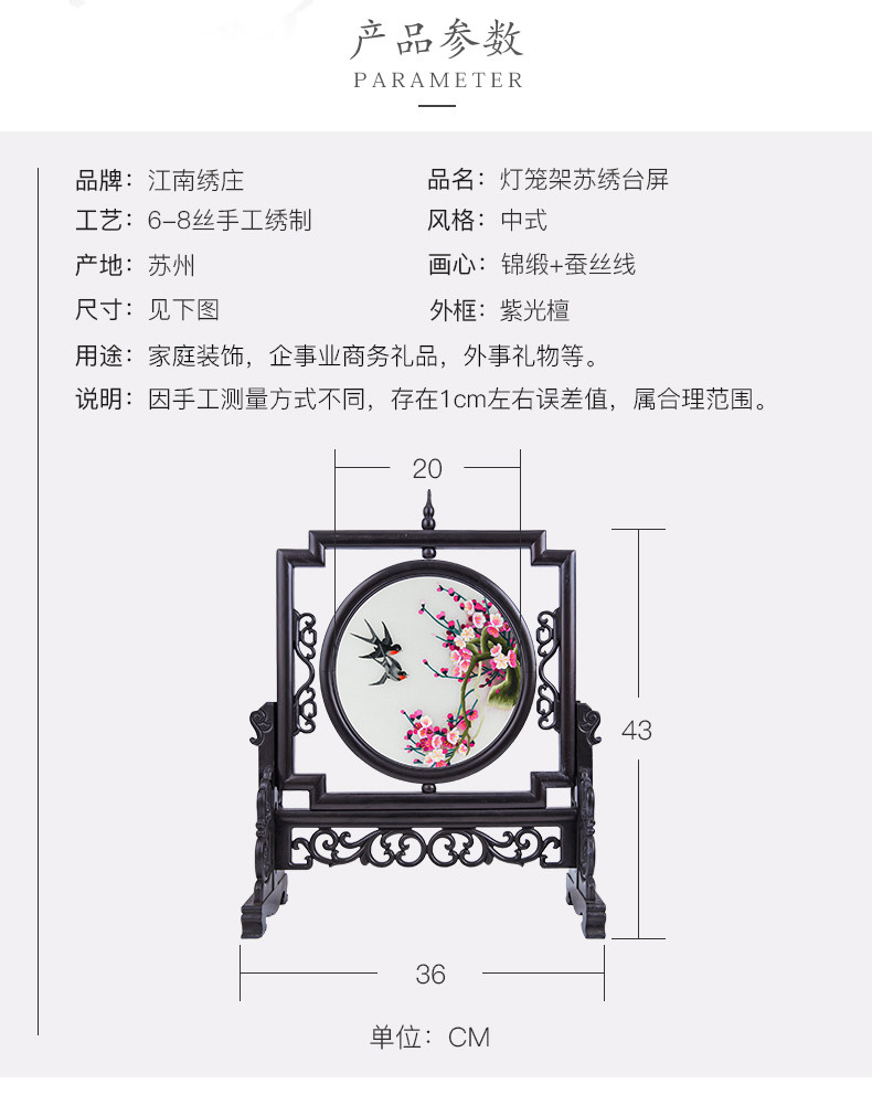 • 苏绣双面绣摆件家居饰品客厅小工艺品中国特色礼品送老外中国风
