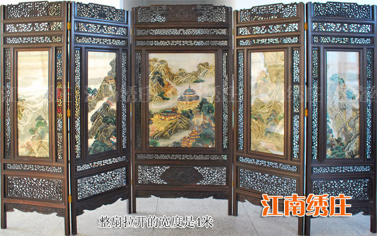 规格:整扇拉开的宽度是4米。外框:左右四幅单扇:70x215CM 中间单扇:105x220CM 画芯:左右四幅单扇:40x100CM 中间单扇:70x100CM