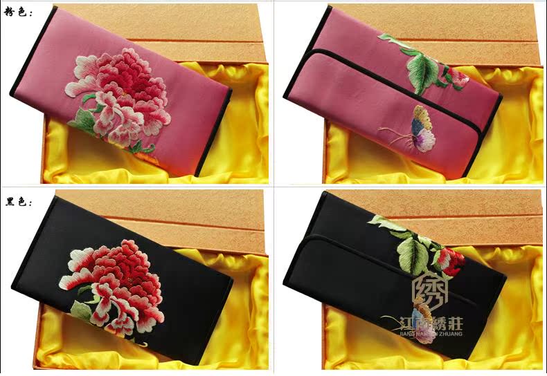 此款手工刺绣钱包,采用真丝做底料。古典,精细。别致的花型、具有浓厚的中国特色传统文化。