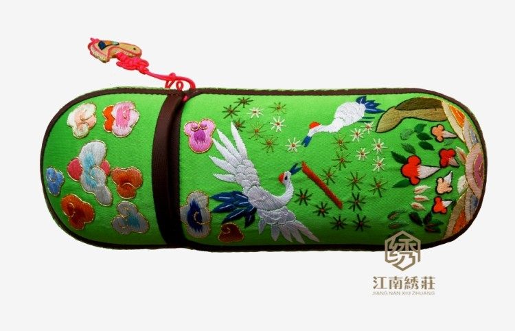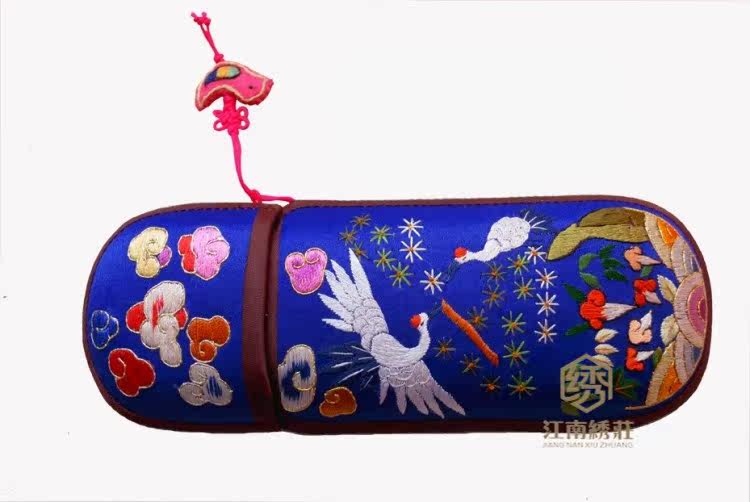 • 江南绣庄苏绣成品手工刺绣江南特色苏州礼品眼镜盒鹤舞 福寿