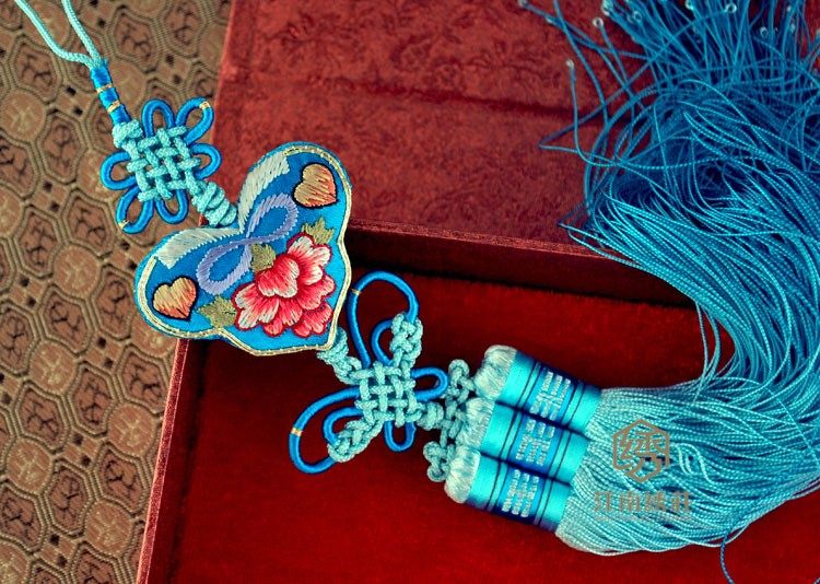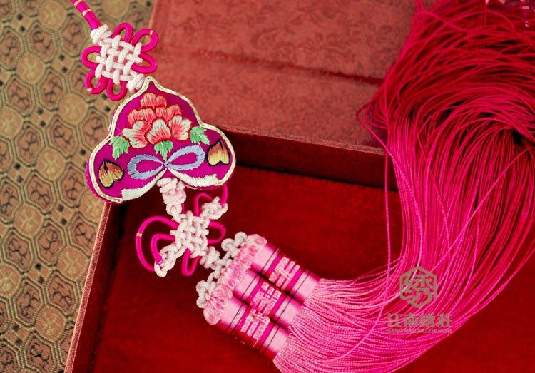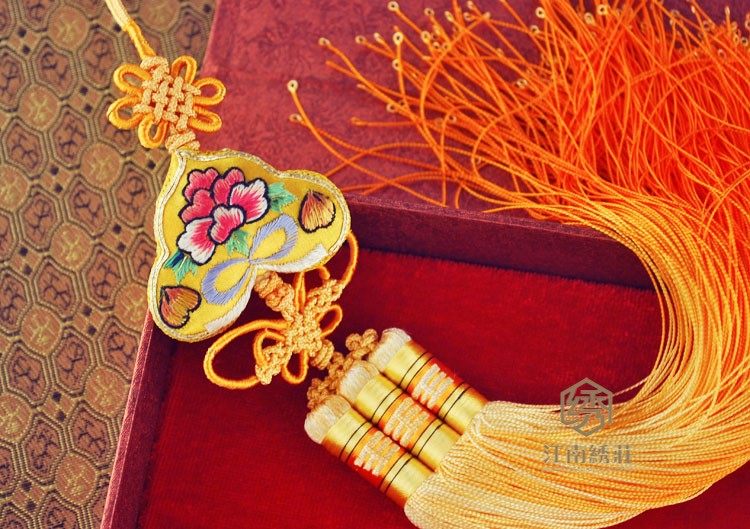 全部纯手工制作。手工刺绣、手工缝制、手工编制很值得收藏把玩。流苏的底部为了防止钩丝,每一根真丝线都打上了一个小圆圈,配上根据冷暖主色调搭配手工编织的中国结艺和渐变的流苏吊坠具有浓厚的中国特色传统文化。适合挂在车的后部,体现您的品味和气质。还适合用于卧室里和玻璃窗的装饰。