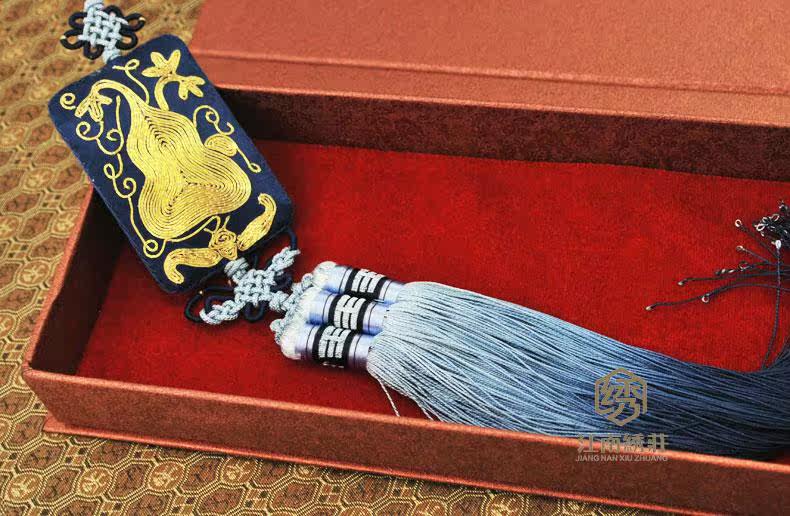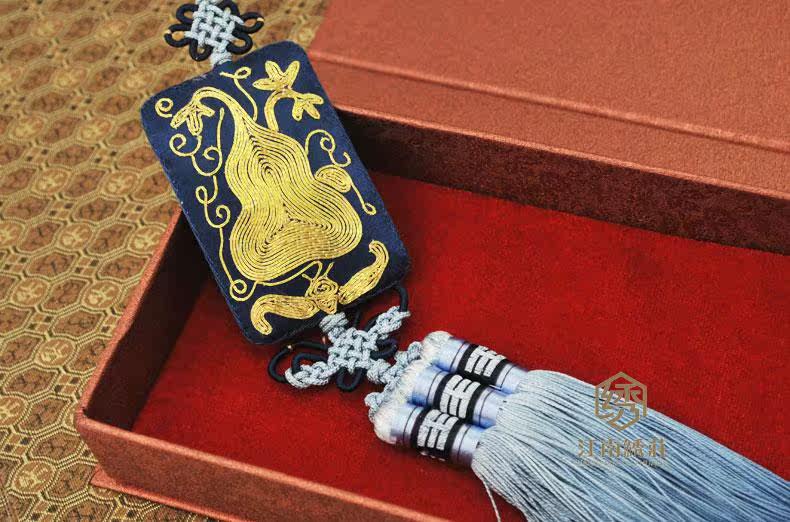 [蝴蝶穗挂件] 车载挂件饰绣汽车精品成品 苏州礼品手工刺绣香型挂件 五福拱寿