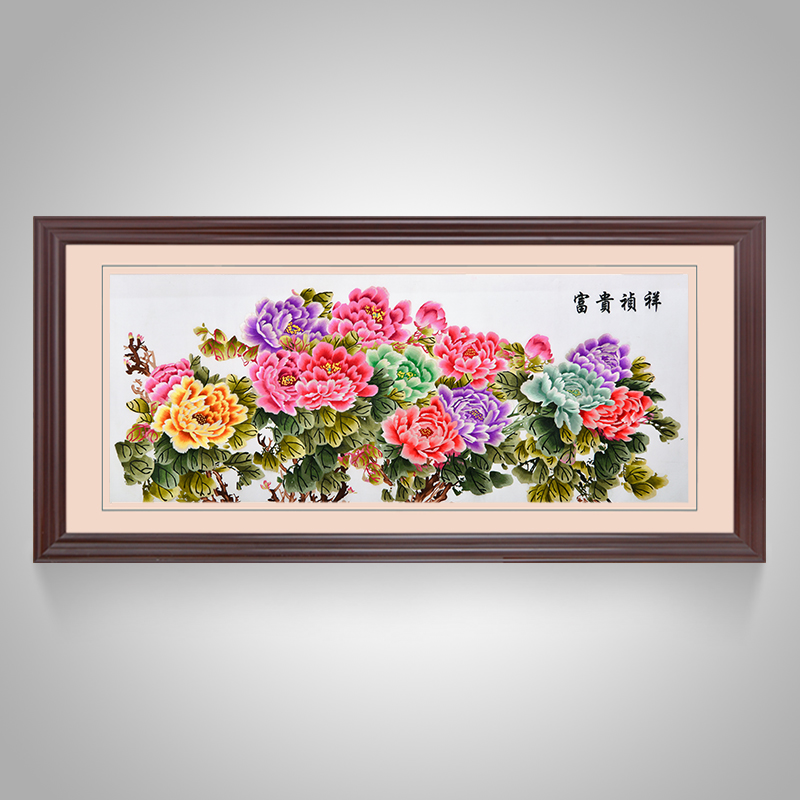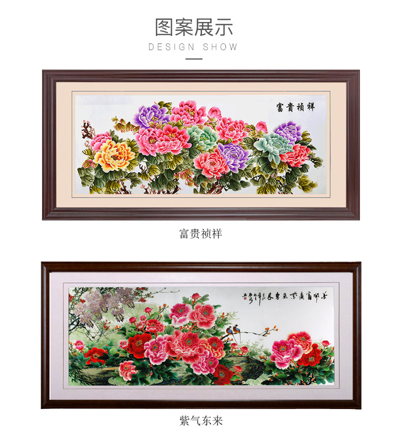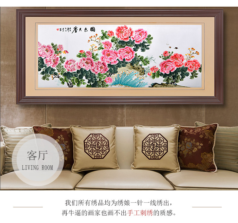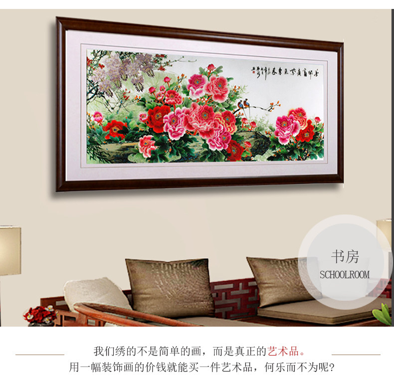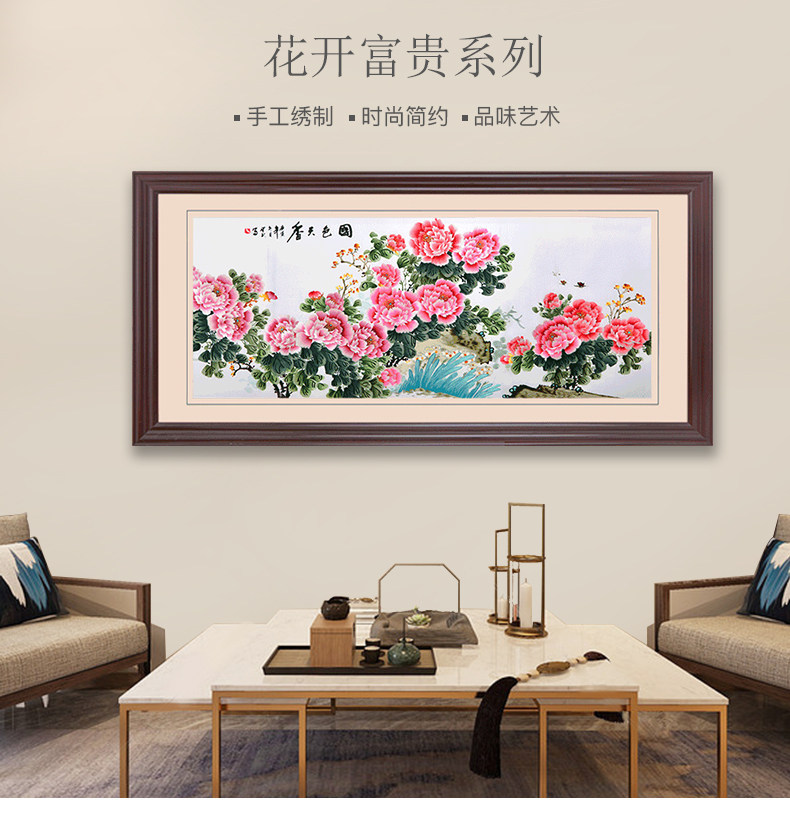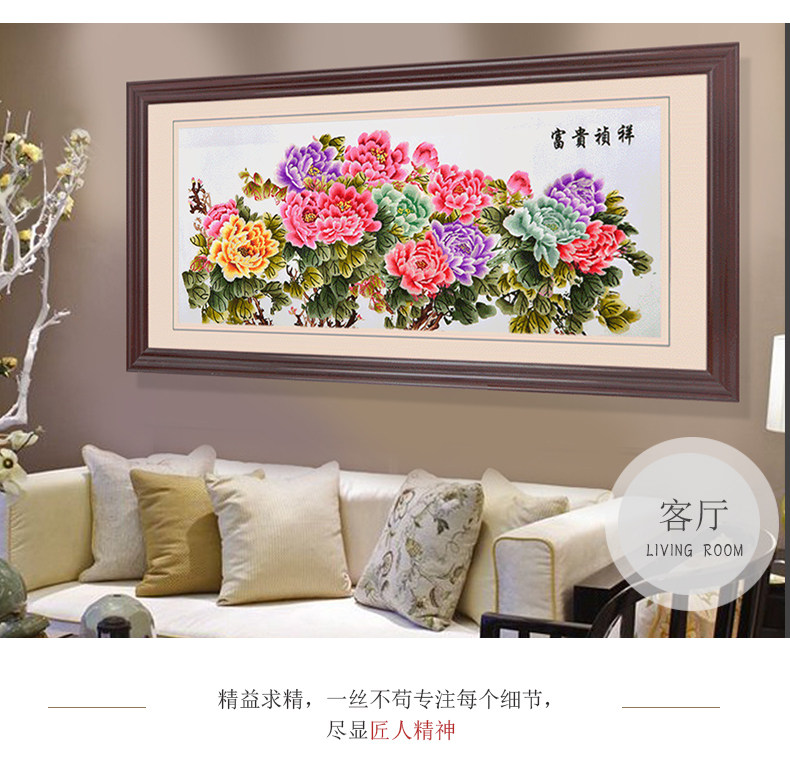 • 牡丹挂画花开富贵大幅装饰画客厅大尺寸壁画背景墙刺绣苏绣成品