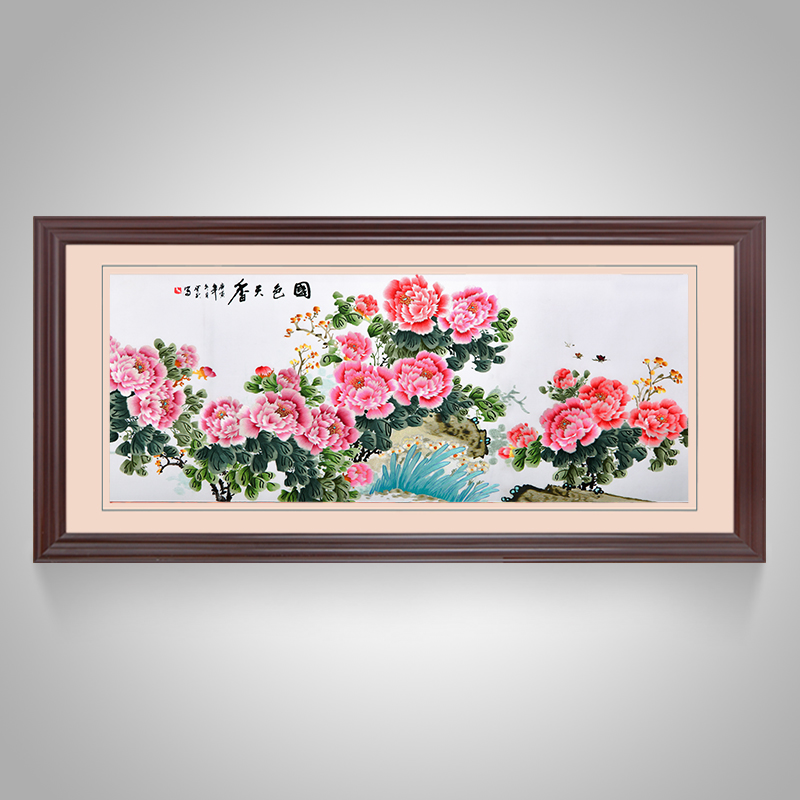 牡丹挂画花开富贵大幅装饰画客厅大尺寸壁画背景墙刺绣苏绣成品