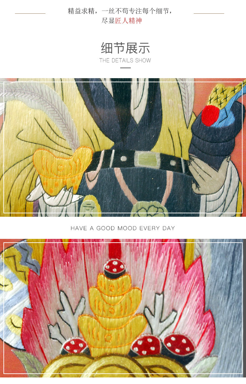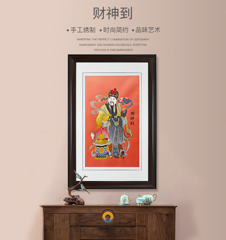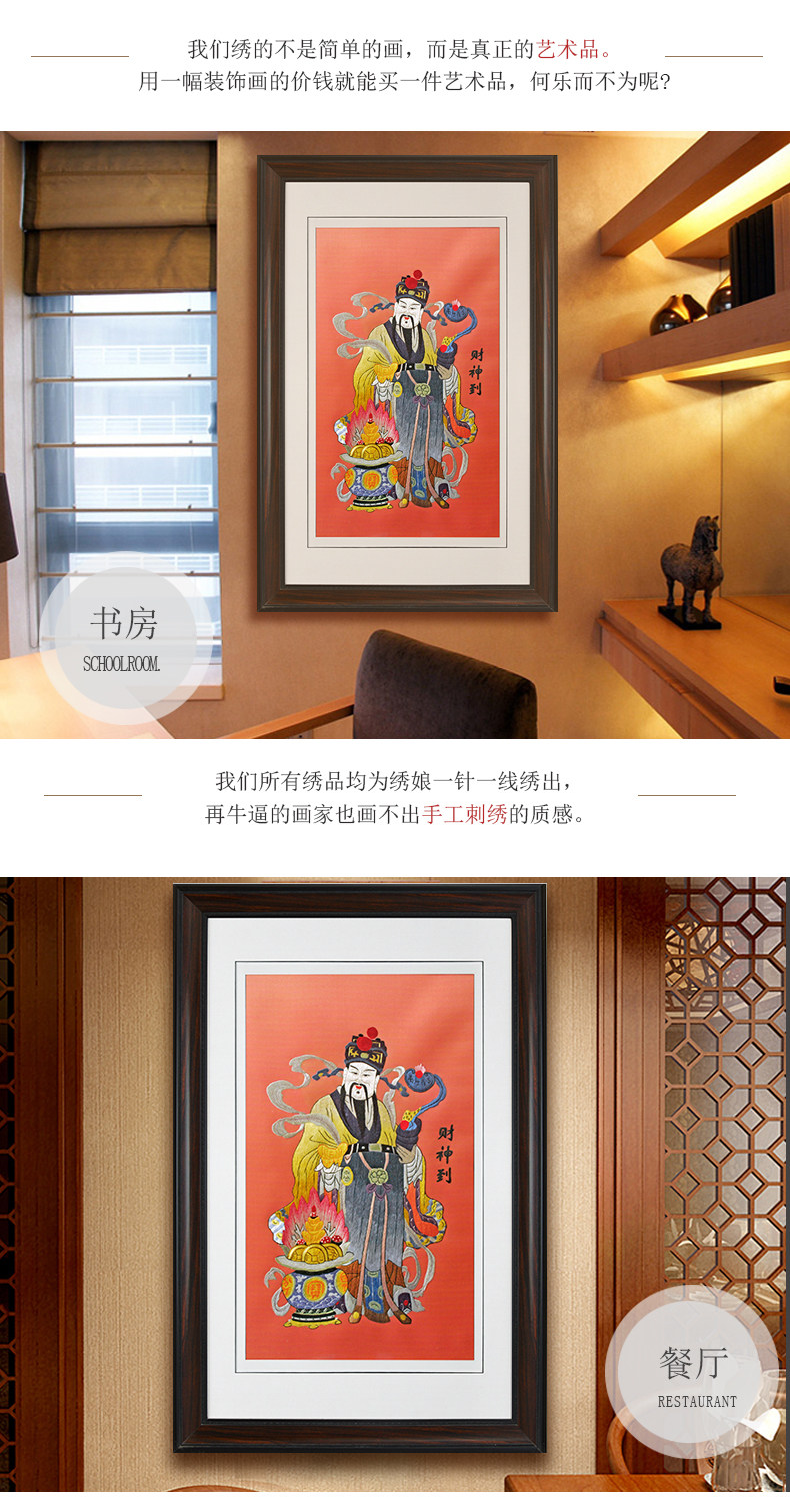 • 中式挂画壁画沙发背景墙人物装饰画客厅墙画装饰单幅手工刺绣画