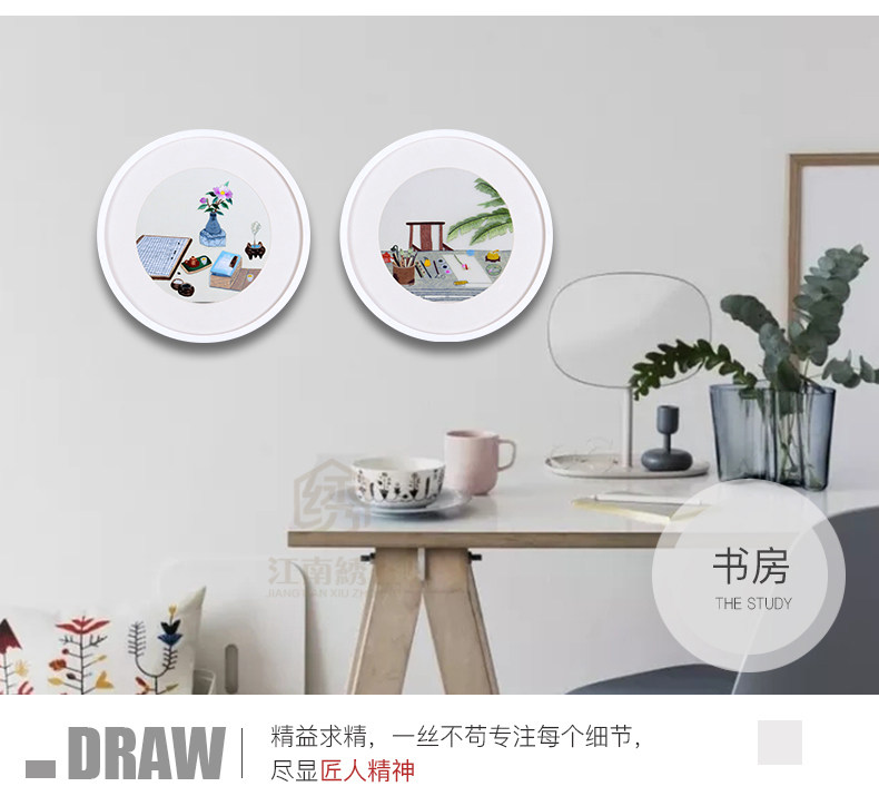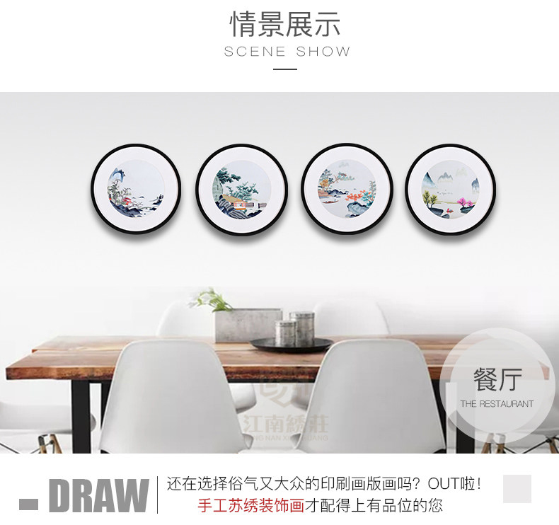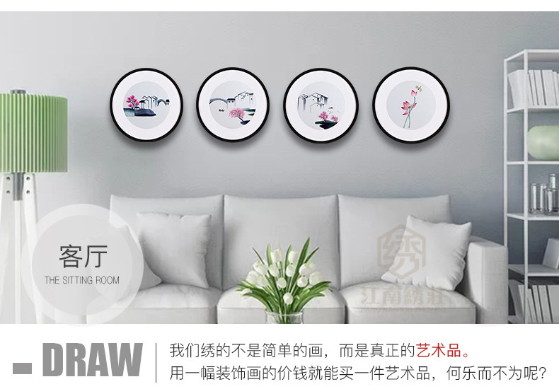 • 客厅装饰画现代简约圆形挂画中式墙画装饰小清新壁画三联组合画