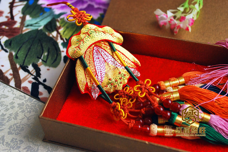 [三穗挂件] 江南绣庄苏绣成品挂件苏州特色礼品手工刺绣精品汽车挂饰 福寿